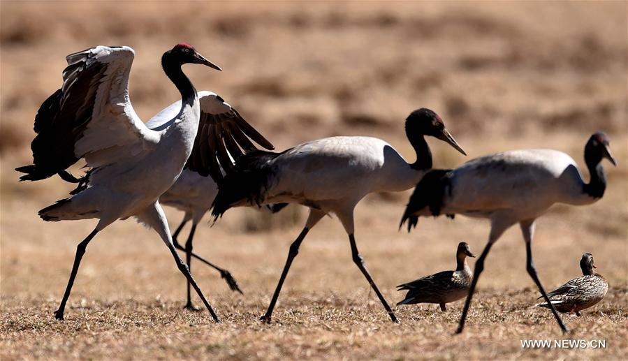 Schwarzhalskraniche in Südwestchina