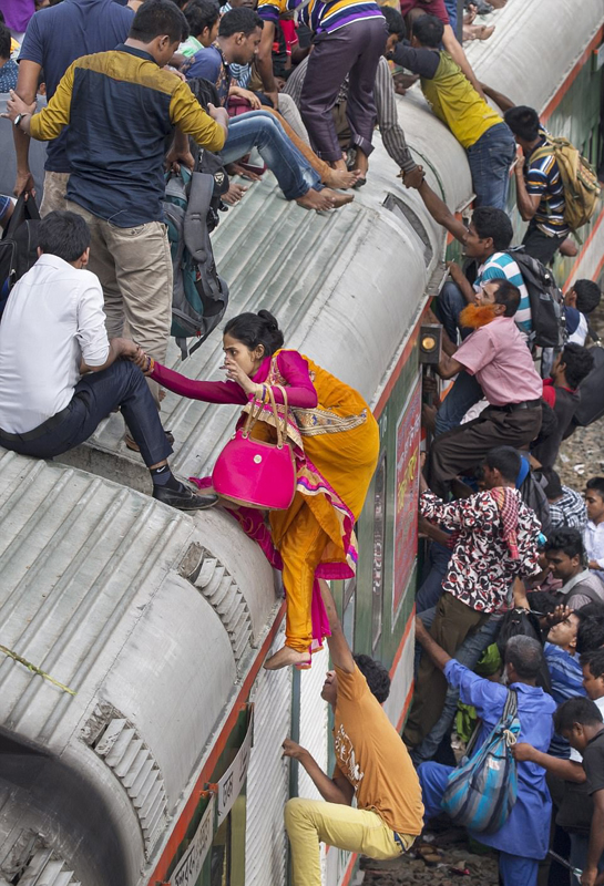 Doch das alles ist nichts im Vergleich zu einer Zugfahrt in Bangladesch. Selbst ein Stehplatz ist hier nur mit großem Glück zu ergattern. Viele Reisende klettern auf das Dach des Waggons. Und an Wochenenden wird es noch schlimmer. Yousuf Tushar, ein 33-jähriger Dokumentarfilmer, hat am Bahnhof in der Hauptstadt Dhaka einen ganzen Tag lang zugebracht und die interessanten Szenen aufgenommen. Nach der Arbeit begab er sich dann selbst in die Menschenmassen, denn er musste wieder nach Hause fahren.
