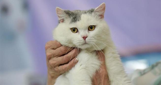 Während der zweitätigen Katzenshow in der nordostchinesischen Stadt Shenyang beäugt eine Frau eine Haustierkatze (Foto vom 16. April 2017).