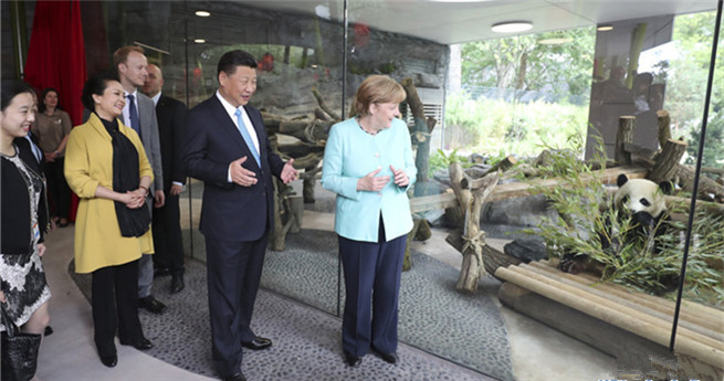 In Berlin hat Chinas Präsident Xi Jinping mit Bundeskanzlerin Angela Merkel das jüngst von China ausgeliehene Pandapärchen im Zoo besucht. Die Leihgabe von Pandas gilt traditionell als Zeichen für einen guten Kontakt beider Länder.