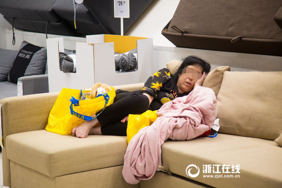 Auf den bequemen Sofas oder Betten, die eigentlich nur zum Verkauf ausgestellt werden, liegen viele Leute herum und halten ihr Mittagsschläfchen.
