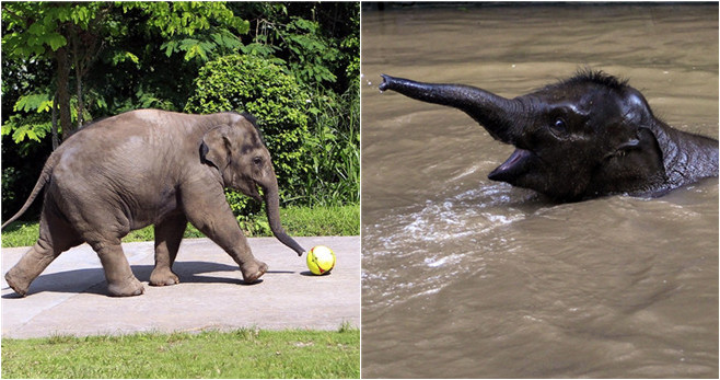 Asiatische Baby-Elefanten üben für Entlassung in die Wildnis