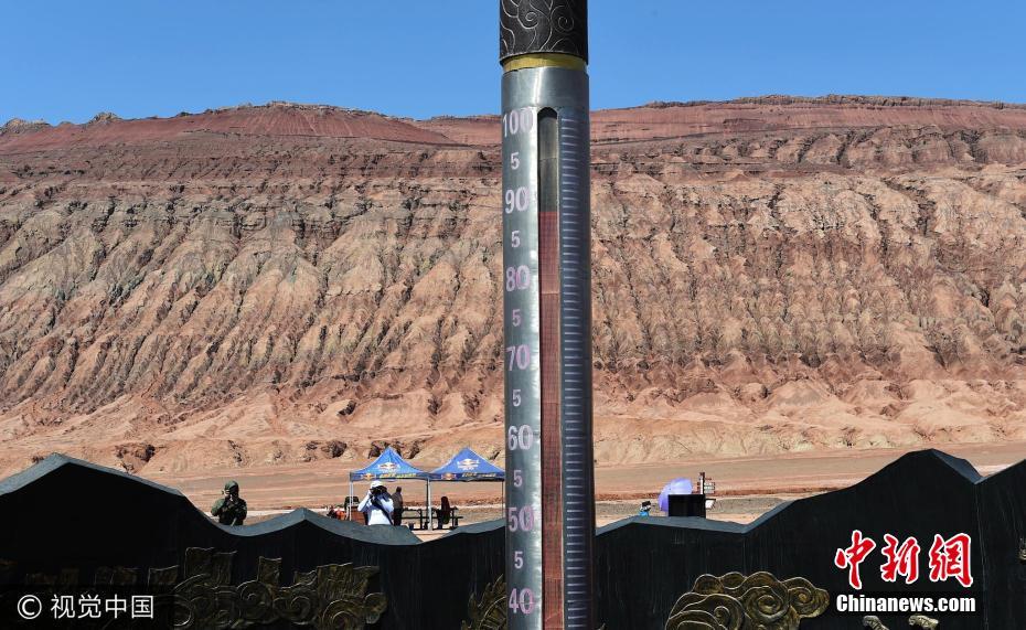 Seit einigen Tagen ist das Uigurische Autonome Gebiet Xinjiang von andauernder Hitze betroffen. Die höchste Temperatur erreichte am verganenen Sonntag 48 Grad Celsius. Die Temperatur der Erdoberfläche im Turpan-Becken erreichte sogar 88 Grad. Das zeigt ein riesiges Thermometer aneiner Touristenattraktion, die „Feuerberg“ genannt wird.