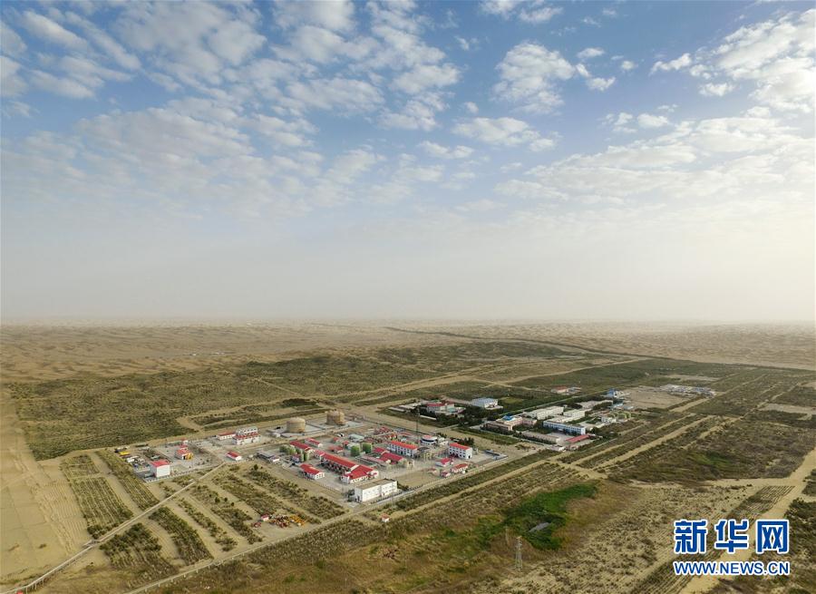 Die Arbeitszone des Tarim-Erdölfeldes in Tazhong an der Tarim-Wüstenautobahn ist zu einer Oase geworden. (Foto vom 9. Juli)