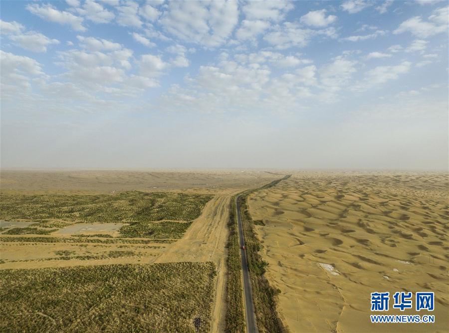 „Die grüne Große Mauer“ bewahrt die Tarim-Wüstenautobahn. (Foto vom 8. Juli)
