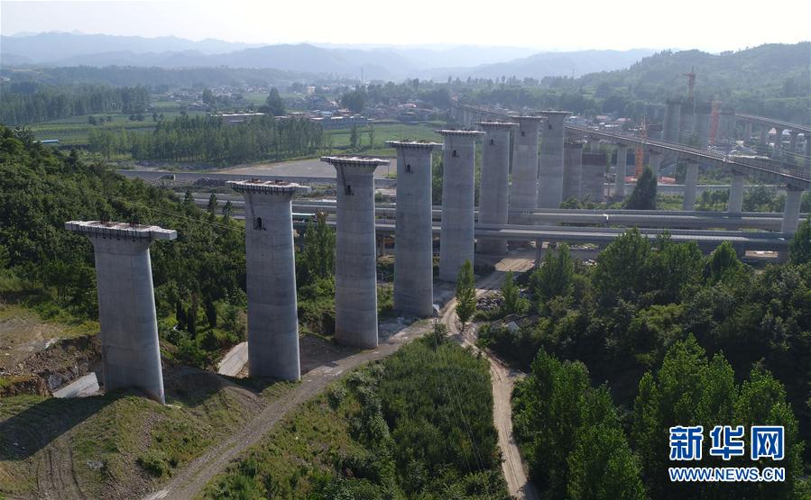 Blick auf die Baustelle eines Eisenbahnabschnitts in der Provinz Henan.