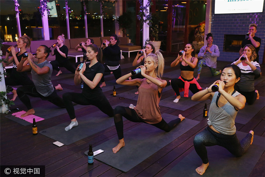 Bier-Yoga,Australien,Melbourne,Biertrinken,Yogaposen