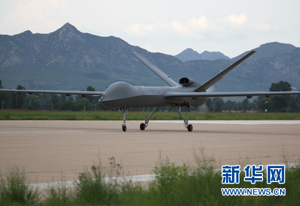 Chinas unbemanntes Fluggerät CH-5, oder "Rainbow 5", hat am Freitag seinen Testflug in der nordchinesischen Provinz Hebei absolviert. [Foto: Xinhua]