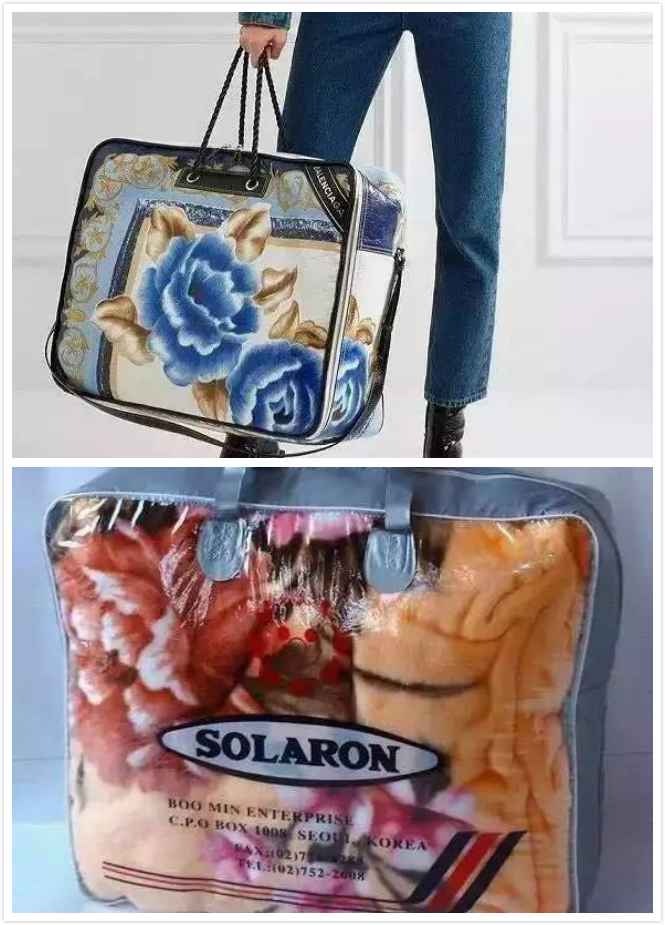Balenciagas neues Produkt „Blanket Square XL" ist eine riesige, gepolsterte Damen-Handtasche mit Blumenmuster. Haben sich die Designer etwa auch hier in China inspirieren lassen? Sowohl die Farbe als auch das Blumenmuster erinnert viele Chinesen an die Wolldecke samt Schutztüte, die sie noch von ihrer Großmutter kennen.