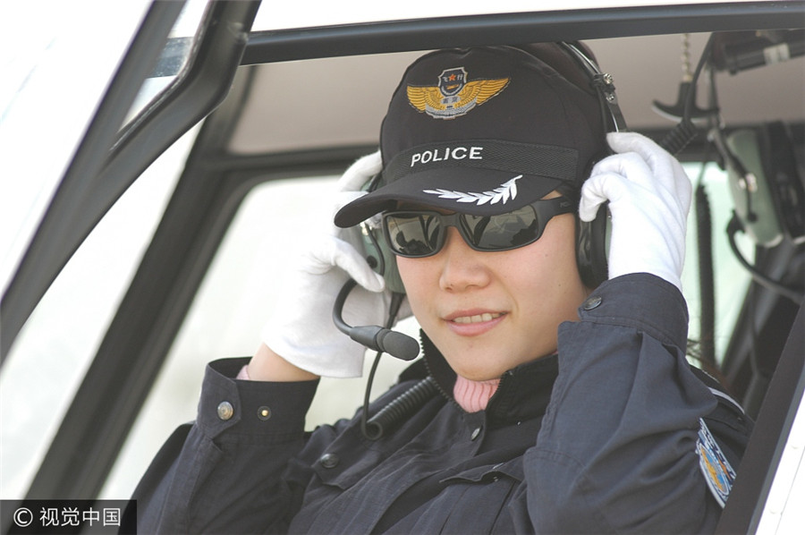 Die erste Polizeipilotin Chinas: Zhang Yuan bei der Spezialeinheit des Amts für Öffentliche Sicherheit Nanjing. (Foto am 7. Dezember 2004)