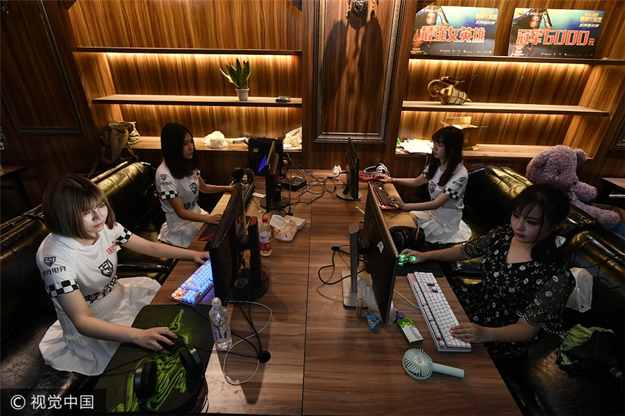 Die weiblichen Mitglieder eines E-Sport-Wettbewerbs in Wuhan, der Hauptstadt der zentralchinesischen Provinz Hubei. (10. August 2017)