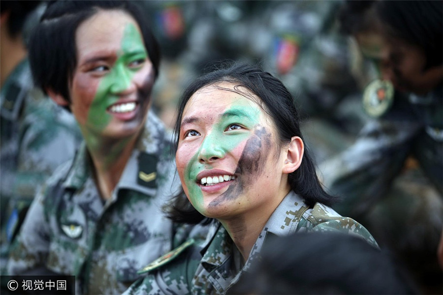 Am 25. Juli 2017 trainieren Soldatinnen einer Brigade der Volksbefreiungsarmee in der südwestchinesischen Provinz Yunnan.