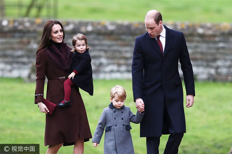 Foto vom 25. Dezember 2016. Herzog und Herzogin von Cambridge, Prinz George und Prinzessin Charlotte, besuchen den Morgengottesdienst am Weihnachtstag in der Markuskirche in Englefield, Berkshire.