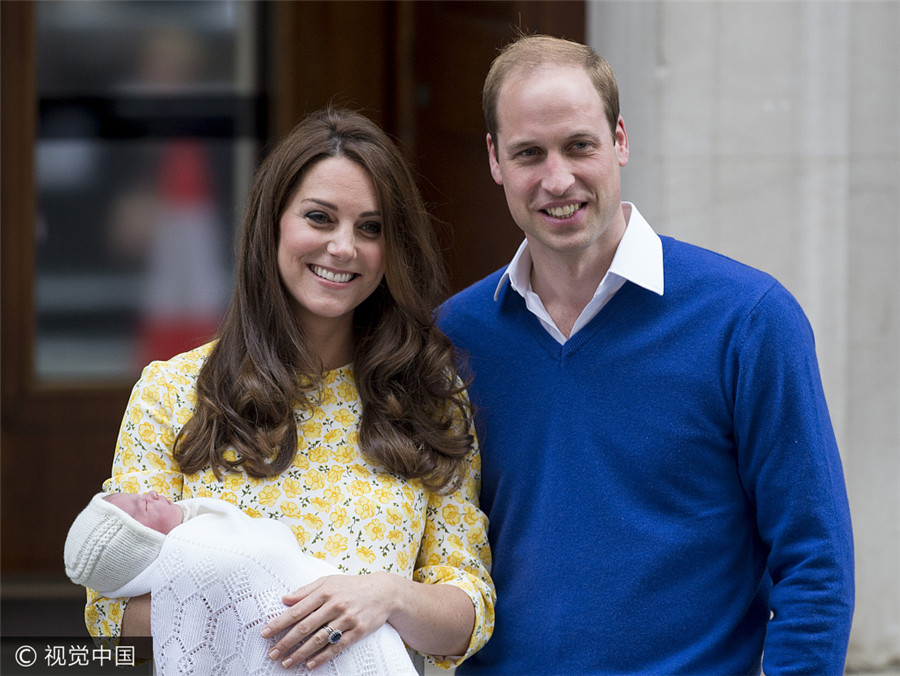 Foto vom 2. Mai 2015. Prinz William (r) und Catherine (l), zeigen ihre neugeborene Tochter, Prinzessin Charlotte von Cambridge