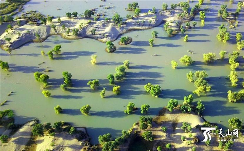 Malerische Herbstlandschaft am Fluss Tarim in Xinjiang