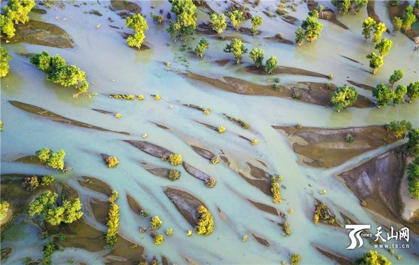 Malerische Herbstlandschaft am Fluss Tarim in Xinjiang
