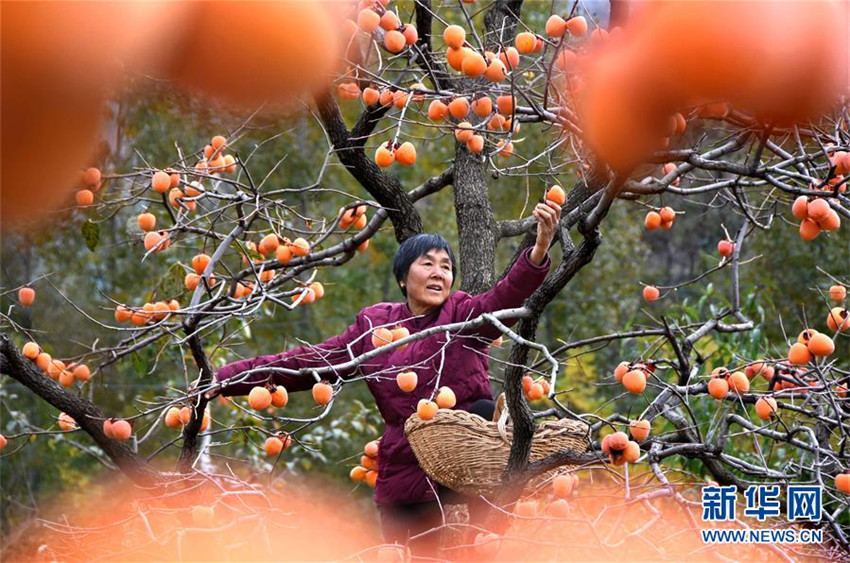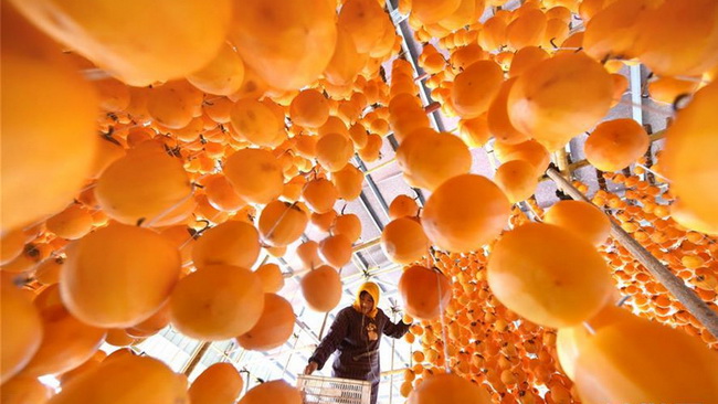 Am Mittwoch beschäftigten sich die Bauern des Kreises Yiyuan in der Provinz Shandong mit der Kaki-Ernte. Yiyuan verfügt über rund 3.333 Hektar Kaki-Feldern. Nach der Ernte werden die frischen Früchte getrocknet und zu einer Süßigkeit verarbeitet.