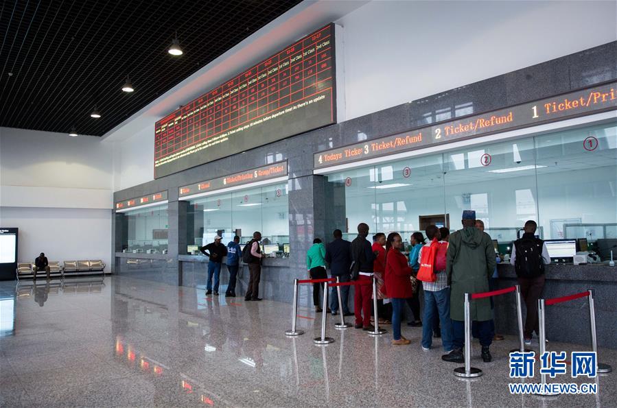 Reisende benutzen den SB-Automaten in der Tickethalle am Bahnhof Nairobi auf der Bahnstrecke Mombasa–Nairobi. (Lue Shuai/Xinhua)
