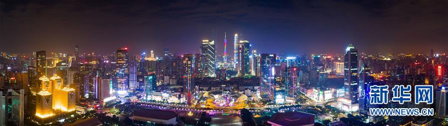 Die „Neue Achse“ von Guangzhou im Stadtteil Tianhe bei Nacht. (Foto vom 2. Dezember, Liu Dawei/Xinhua)