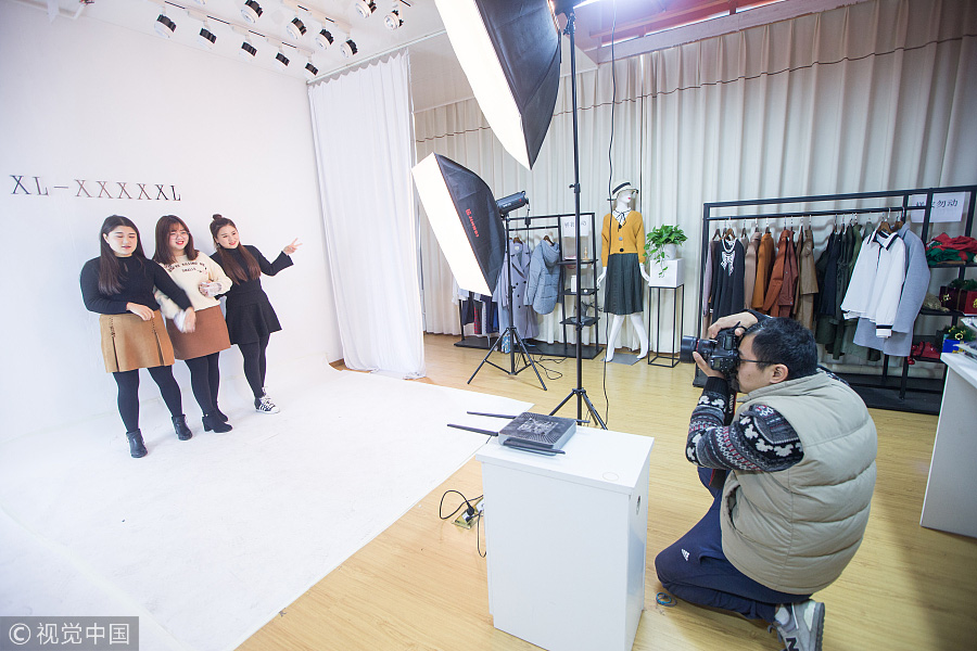 Übergrößen-Models lassen Fotos in Hangzhou aufnehmen.