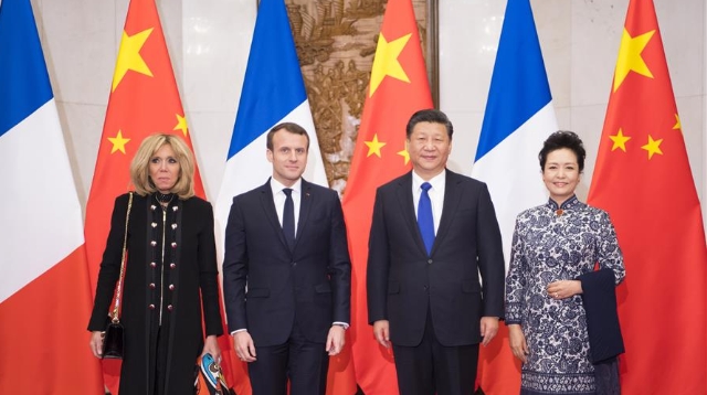 Macron lobte die Seidenstraßeninitiative und bekräftige Frankreichs Bereitschaft, aktiv an dessen Aufbau teilzunehmen. Er werde gerne das gegenseitige Vertrauen und die Beziehungen zwischen beiden Nationen sowie die europäisch-chinesischen Beziehungen stärken. Frankreich werde gemeinsam mit China einen Beitrag dazu leisten, globale Herausforderungen wie den Klimawandel zu bewältigen. Sein Besuch sei ein Meilenstein für die französisch-chinesischen Beziehungen, fügte er hinzu.
