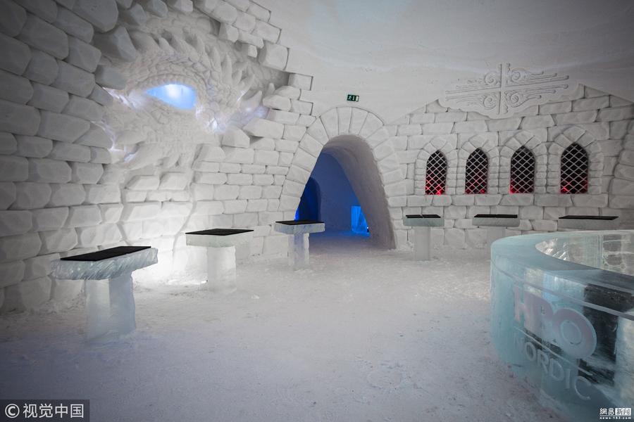 Diesen Winter ist rund 200 Kilometer vom Polarkreis entfernt ein von der populären Fernsehserie „Game of Thrones“ inspiriertes Hotel errichtet worden. Der einzigartige Bau besteht nur aus Eis und Schnee und ist mit zahlreichen Eisskulpturen der Figuren aus der Serie ausgestattet.