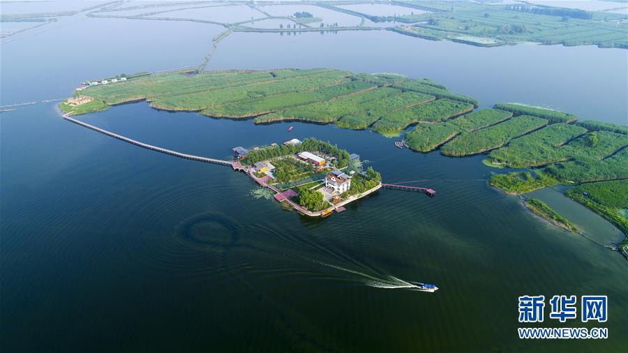 Luftaufnahme vom Baiyang-See in der Provinz Hebei vom 8. Juli 2017.