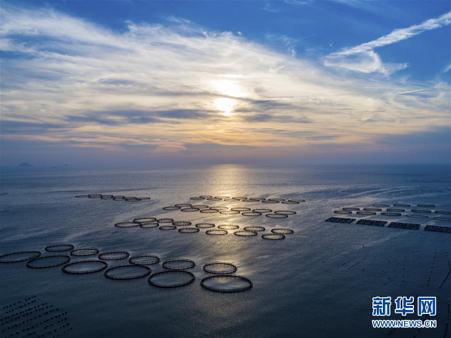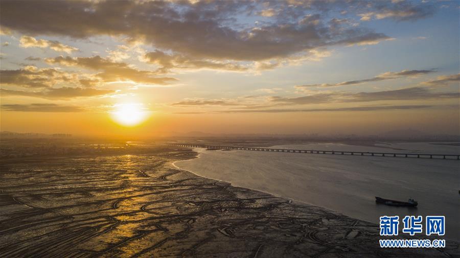 Luftaufnahme vom Sonnenuntergang am Meeresstrand in der Provinz Fujian am 1. November 2017.