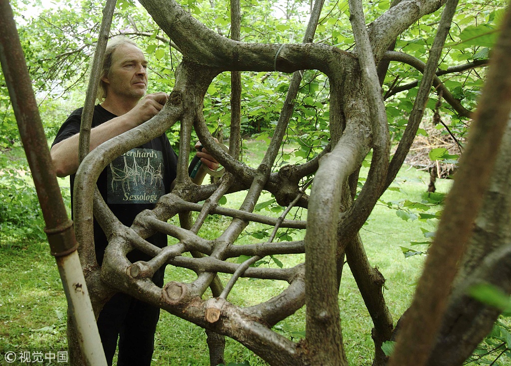In den Bäumen im Wäldchen des Wiener Designers Bernhard Schmid wachsen keine Früchte, sondern Sessel. Die Form bestimmt er mit Hilfe alter Sesselgestelle, die er in die Äste hängt. Bis zur Ernte vergehen viele Jahre.