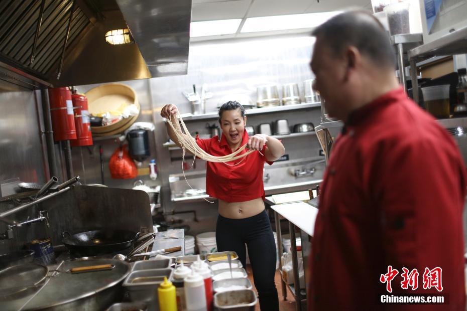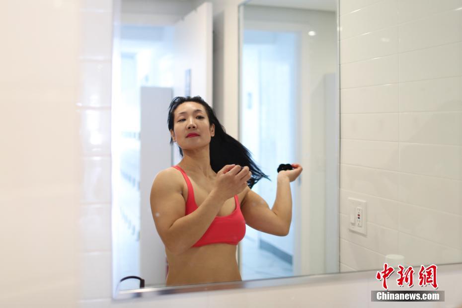 Nach mehrjährigen Bemühungen hat sie in den USA endlich einen Preis auf der Weltbühne des Wettkampfs gewonnen. Nun betreibt sie ein eigenes Fitnesscenter für Auslandschinesen in New York. Im Bild zeigt Cao ihrem Kunden, wie man richtig trainiert. Jede Woche arbeitet sie vier bis fünf Tage. In ihrem Studio bietet sie auch Einzelkurse an.