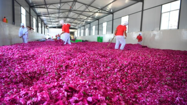 Essbare Rosen sind wichtige Zutaten für Blumenkuchen, eine Spezialität in Yunnan. Auf etwa 10.000 Mu (667 Hektar) werden diese Rosen in Anning angepflanzt.