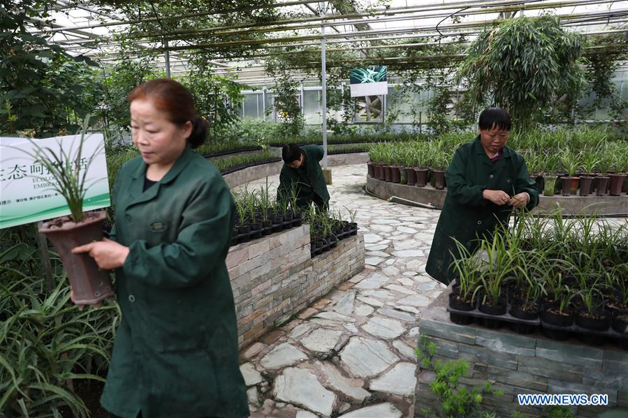 Arbeiter transportieren Orchideen im Landwirtschaftspark West.