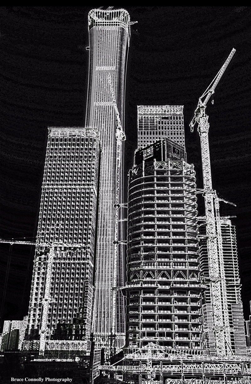 Bau des China Zun von der China World Mall Terrace 2018.