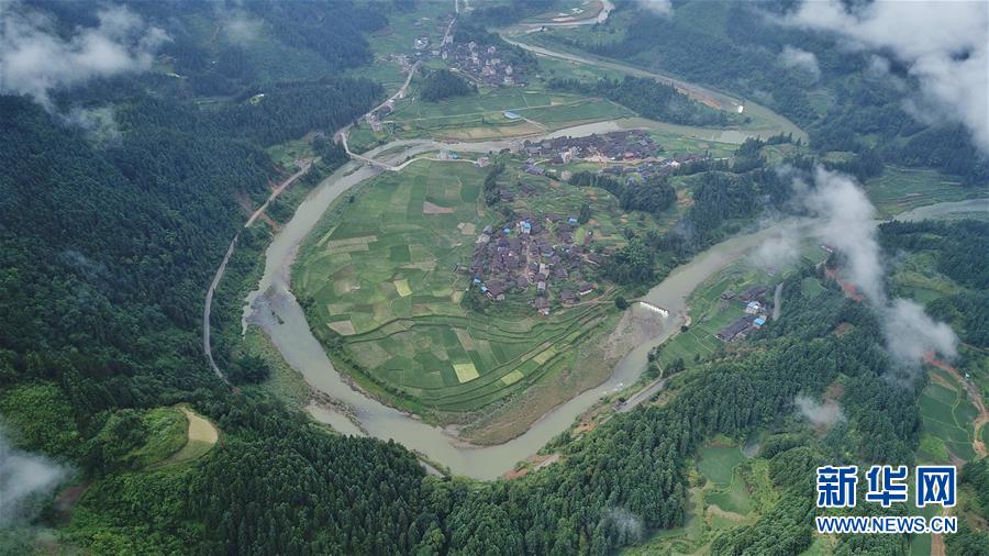 Malerische Landschaft im Dorf der ethnischen Minderheit Dong