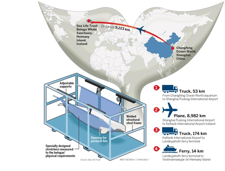 Zwei Belugawale, die in einem Aquarium in Shanghai leben, werden nächstes Jahr eine Reise von mehr als 9,223 Kilometern zu einem neuen offenen Wasserschutzgebiet in Island machen.