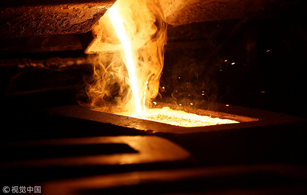 In der Nähe von Elko in Nevada wird flüssiges Gold zu Goldbarren geformt. (Foto am 21. Mai 2014)