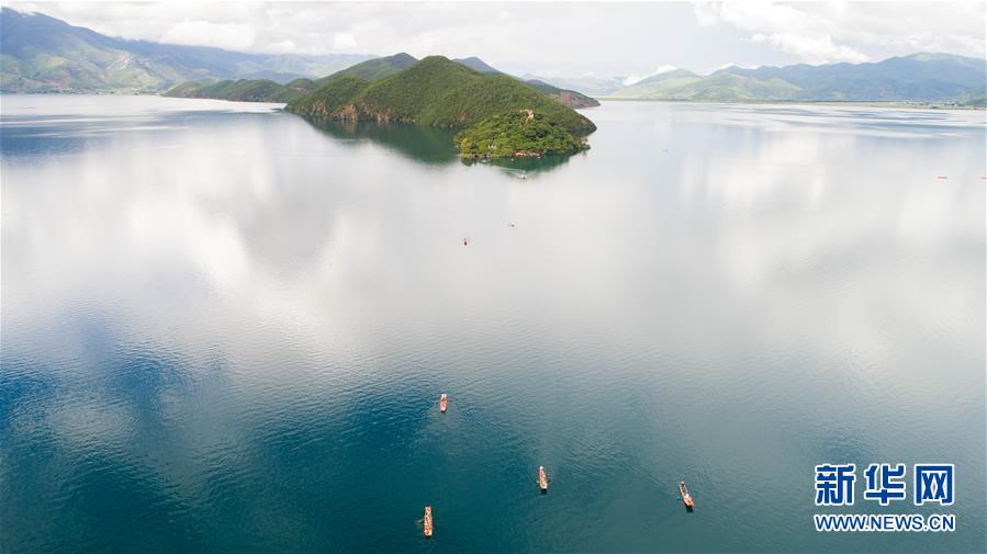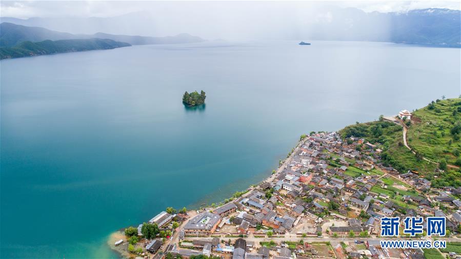Eine Luftaufnahme vom Lugu-See. Die Wasserqualität liegt auf höchstem Niveau.