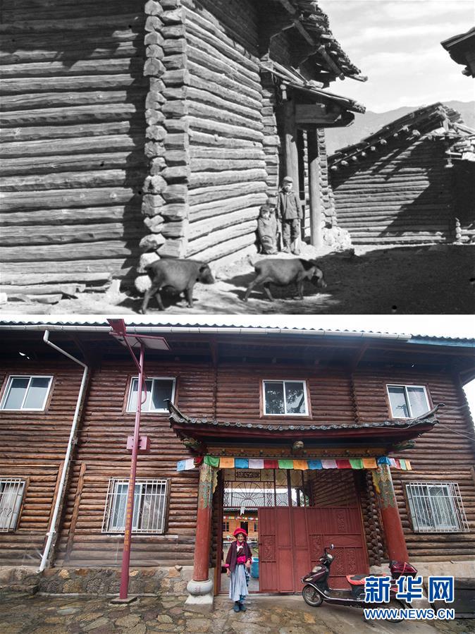 Rechts: Am 30. Juli 2018 steht Cili Drolma mit Enkelin vor ihrem Haus. Sie betreibt einen Gasthof und verdient jährlich über 200.000 Yuan.