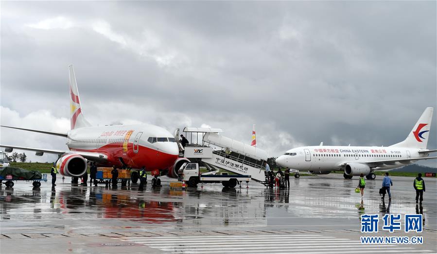 Passagiere auf dem Flughafen Lugu-See in Ninglang.