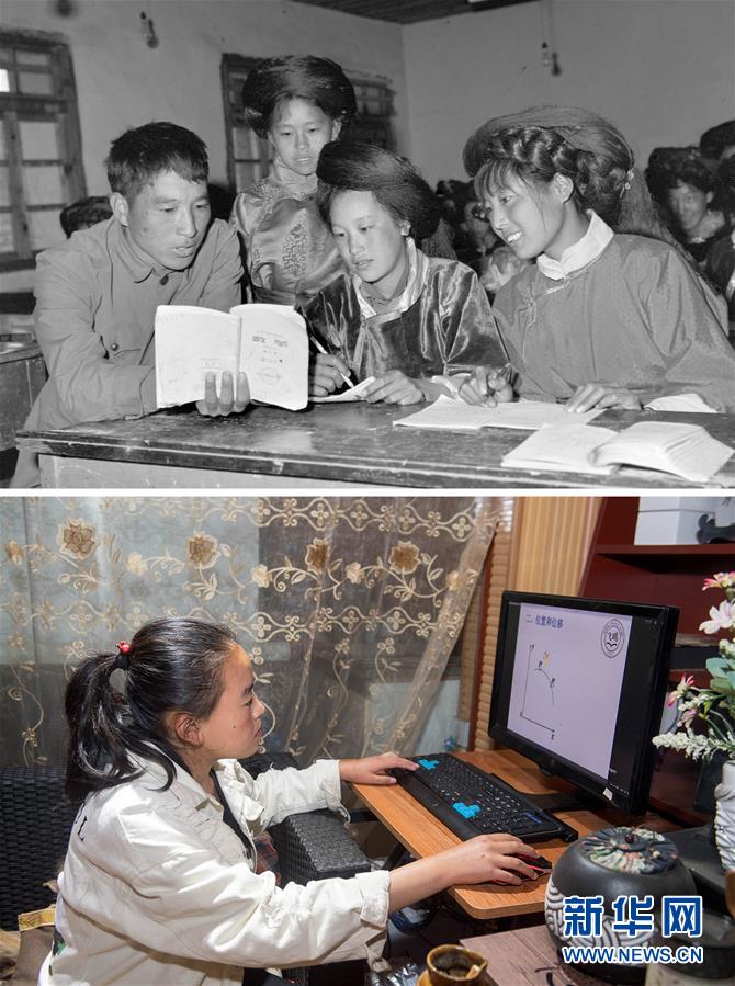 Unten: Am 31. Juli 2018 lernt das 16-jährige Mosuo-Mädchen Zhou Yunxian zu Hause mit Hilfe vom Computer Mathematik.