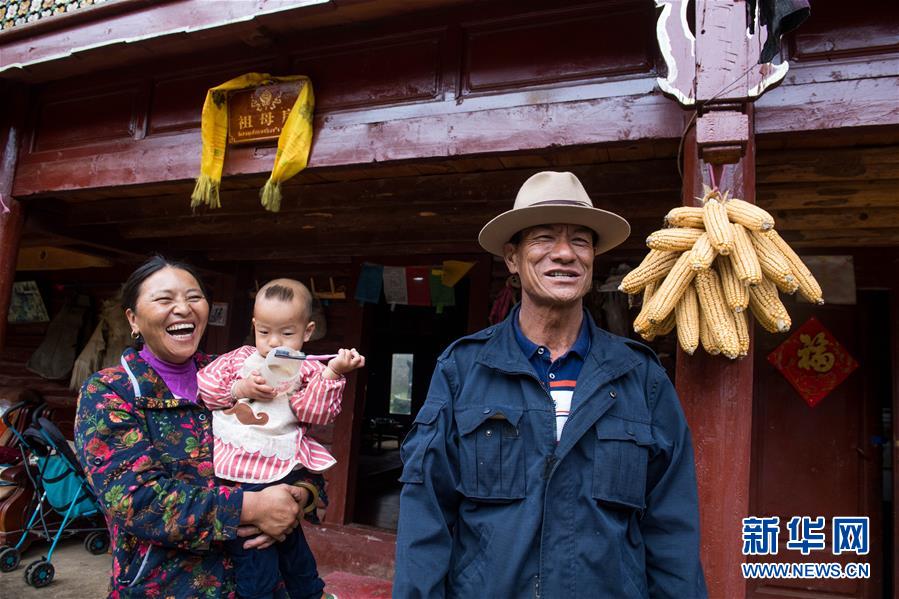Die Mosuo-Familie Apu Sigan (r.) vor ihrem Haus am 30. Juli. Das Haus wird als eines der wichtigen Wohnhäuser matriarchalischer Gesellschaft geschützt. Sie verdienen jährlich etwa 200.000 Yuan, indem sie touristische Services anbieten.