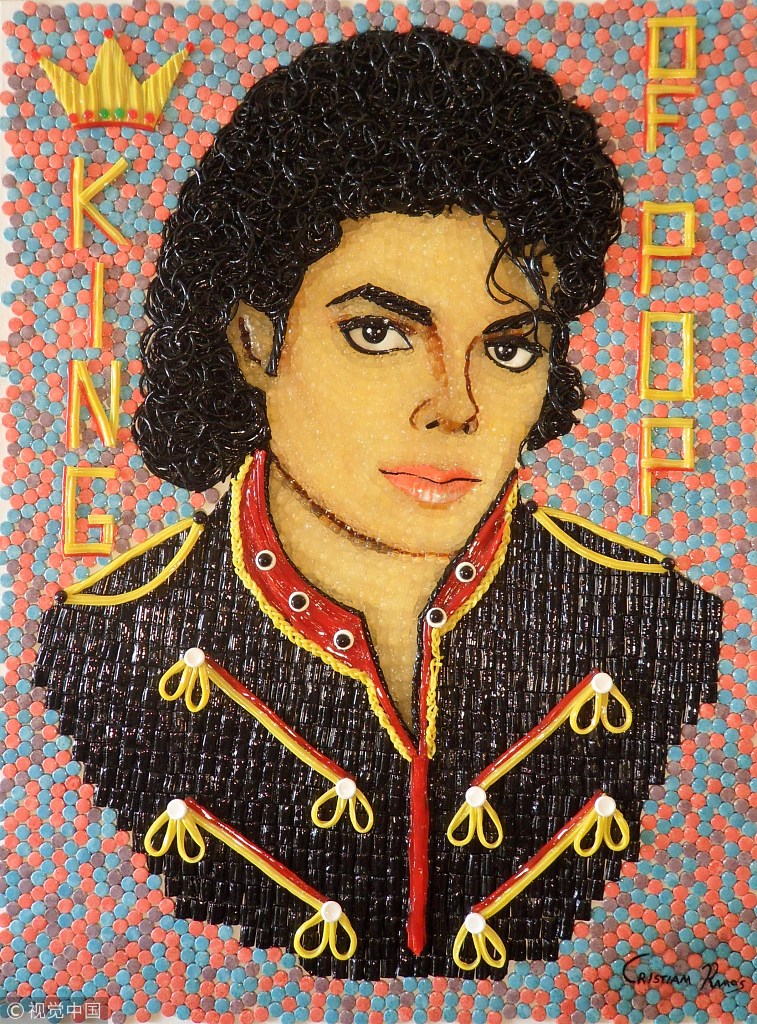 Der mexikanische Künstler Cristiam Ramos hat aus 5000 Bonbons ein Portrait von Michael Jackson angefertigt. (20. November 2012)