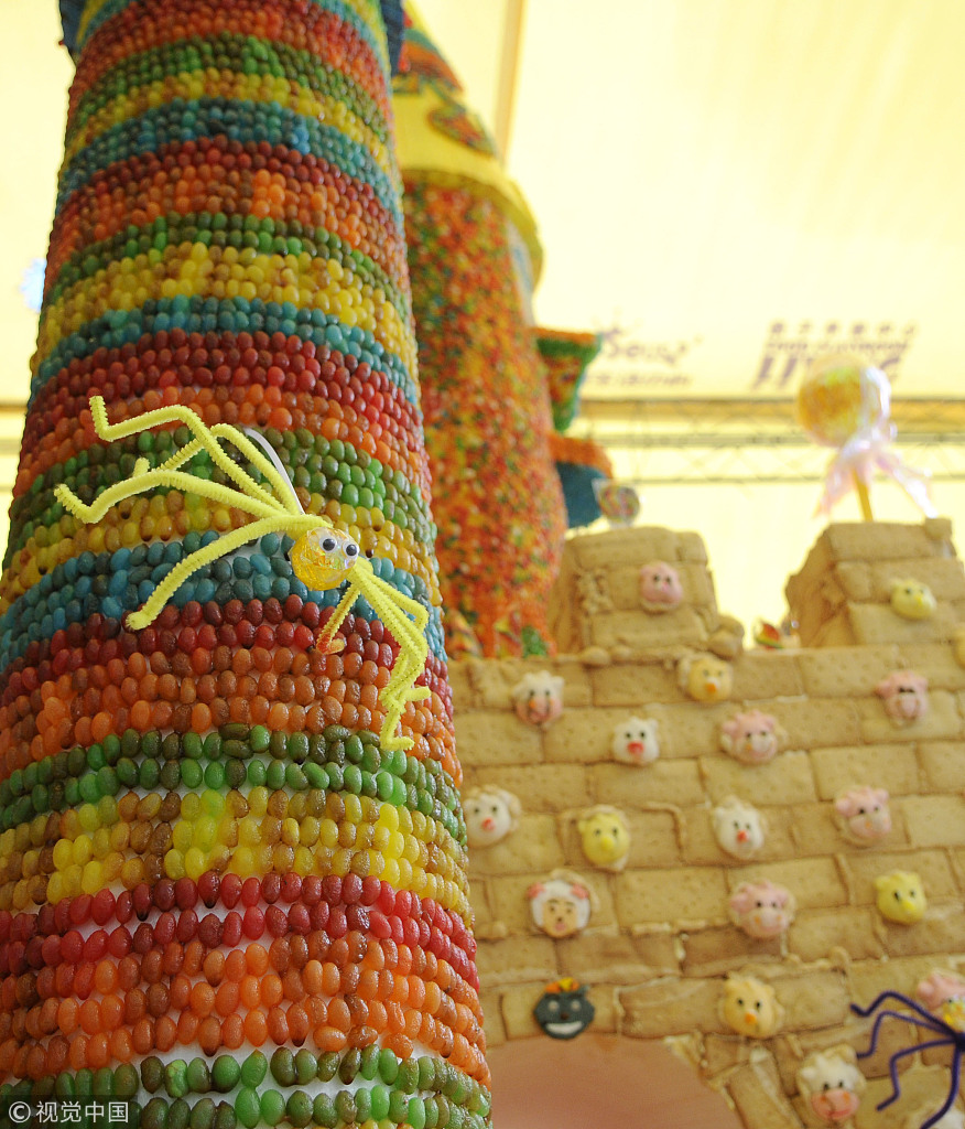 Eine aus Süßigkeiten und Keksen gebildete Burg auf dem Ego Digital Square in Kunming, der Hauptstadt der südwestchinesischen Provinz Yunnan. (Foto am 28. Oktober 2010)