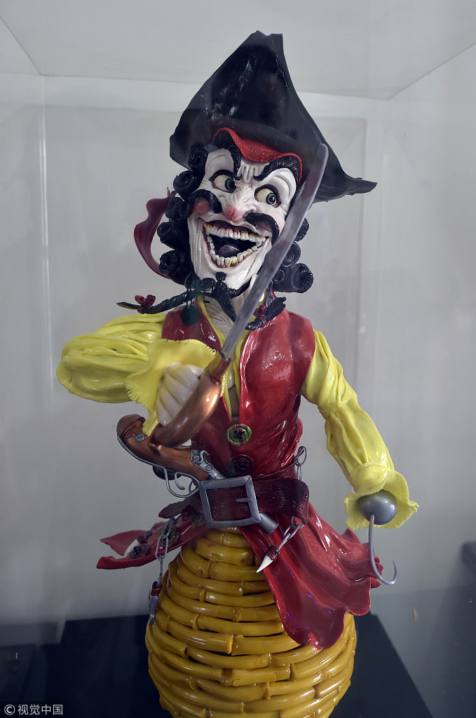 Ein karibischer Pirat aus Süßigkeiten, ein Meisterwerk von Zhang Yuanhong aus Chongqing. Zhang ist ein Volkskünstler, der aus Süßigkeiten Kunstwerke kreiert.