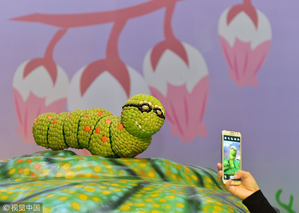 Eine leckere Raupe auf einer Süßigkeitenexpo in Wuhan am 29. September 2014.