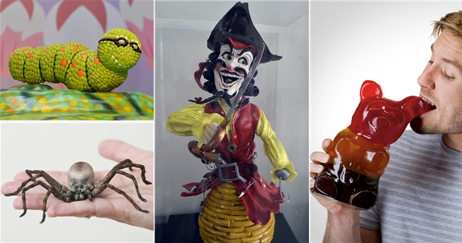 Diese kolossale Süßigkeit ist der größte Gummibär der Welt und ist 1400 Mal so groß wie der gewöhnliche. Der etwa 2,27 Kilo schwere Bär wurde vom Geschenkhändler Vat19 hergestellt.