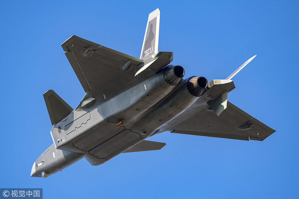 Am Dienstagvormittag haben J-20-Kampfjets der chinesischen Luftwaffe über dem Flughafen von Zhuhai eine Flugshow präsentiert. Eine halbe Stunde lang flogen die Flugzeuge in Formation. Der J-20 ist der neueste Kampfjet der chinesischen Luftwaffe und der Luftfahrtindustrie. Vor zwei Jahren absolvierte er auf der Flugshow von Zhuhai seinen Jungfernflug.