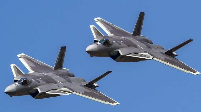Am Dienstagvormittag haben J-20-Kampfjets der chinesischen Luftwaffe über dem Flughafen von Zhuhai eine Flugshow präsentiert. Eine halbe Stunde lang flogen die Flugzeuge in Formation.