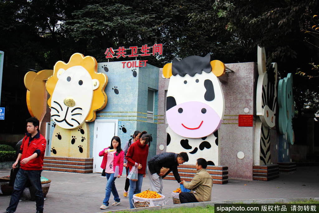 Am Eingang eines Wildparks in Chongqing strömen die Besucher zu einer Toilette, die wie Tiere gestaltet ist. (Foto am 21. November 2015).