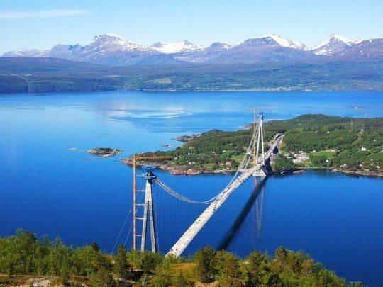 Die „Sichuan Road and Bridge Group“ (SRBG) hat die Stahlkonstruktionen geliefert und war für die Montage der Brücke verantwortlich, was zu einer erheblichen Abkürzung auf der europäischen Route E6 beiträgt. Bei der E6 handelt es sich um die Nord-Süd-Hauptstraße durch Norwegen und die Westküste von Schweden.